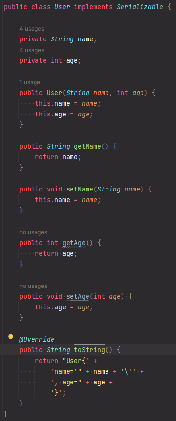 직렬화 파일을 다시 역직렬화 하면 User 객체를 얻을 수 있다.