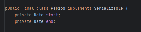 이 클래스를 직렬화 하기로 했을 때 Period 객체의 물리적 표현이 논리적 표현과 부합하므로 기본 직렬화 형태를 사용한다고 하면 이 클래스의 주요한 불변식을 더는 보장하지 못하게 된다.