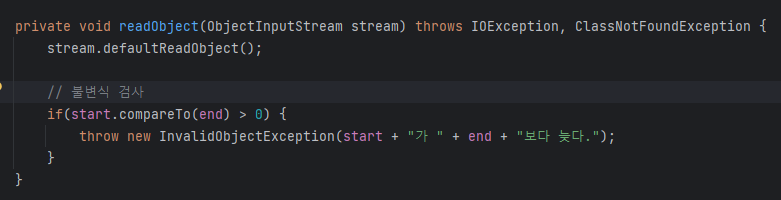 이 readObject 메서드를 사용하려면 start와 end 필드에서 final 한정자를 제거해야한다.