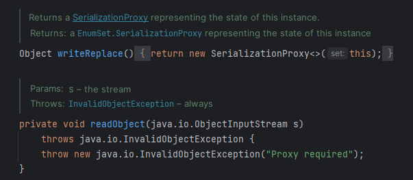 원소 64개 짜리 열거타입을 가진 EnumSet을 직렬화한 다음 원소 5개를 추가하고 역직렬화 하면 처음 직렬화 될 때는 RegularEnumSet 인스턴스이고 역직렬화할 때는 JumboEnumSet인스턴스로 하면 좋을 것이다.