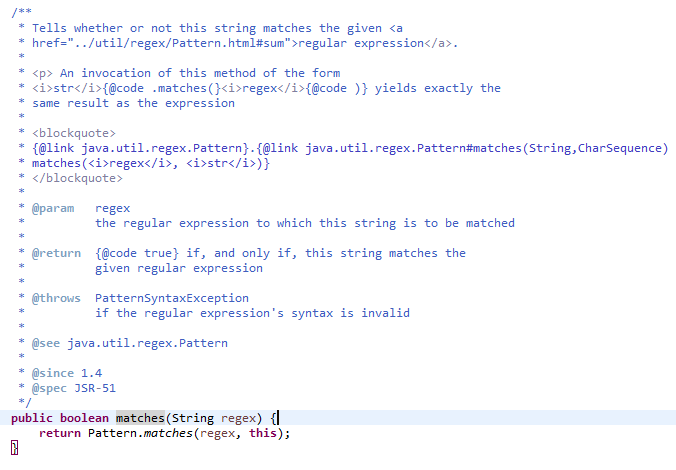 matches() : 대상 문자열과 패턴이 일치할 경우 true 반환합니다.