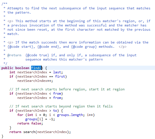 find(int start) : start위치 이후부터 매칭검색을 수행합니다.