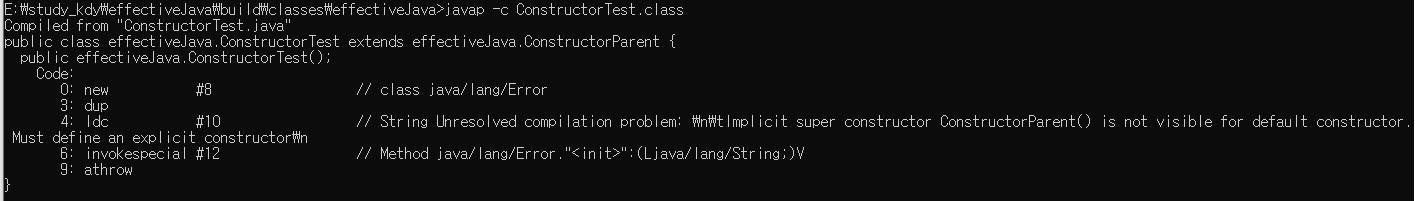 abstract도 인스턴스화가 가능하여 기본생성자를 선언하고 private 키워드를 사용하면 다른 클래스에서 생성을 못하게 막아준다. 하지만 내부에서는 여전히 인스턴스화가 가능하므로 기본생성자 블록안에 실행되면 에러처리가 나게 만든다.