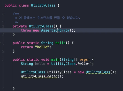 인스턴스화를 막기위해 abstract 클래스로 만들어 주는 방법이 있지만
