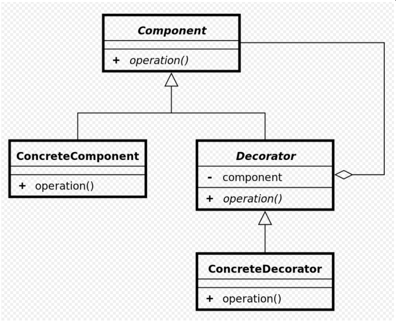 Decorator : Component와 ConcreteDecorator를 동일시 하도록 해주는 역할
