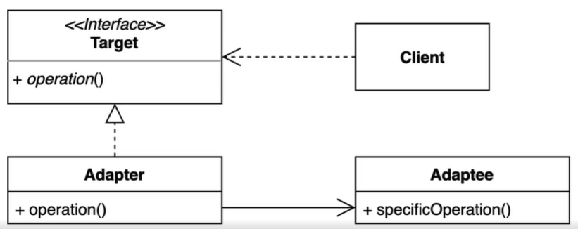 - Adaptee는 Target 인터페이스를 구현하지 않고 있다.