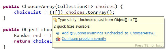 이 클래스를 사용하려면 choose 메서드를 호출할 때마다 반환된 Object를 원하는 타입으로 형변환해야 한다.