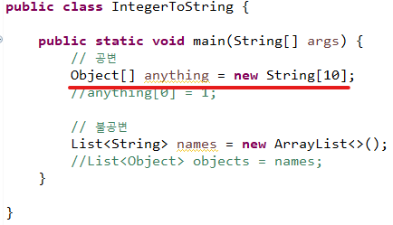배열의 공변이란 상속 관계에 있는 배열이 묵시적 형변환이 가능한가? 그렇다는 것이다.